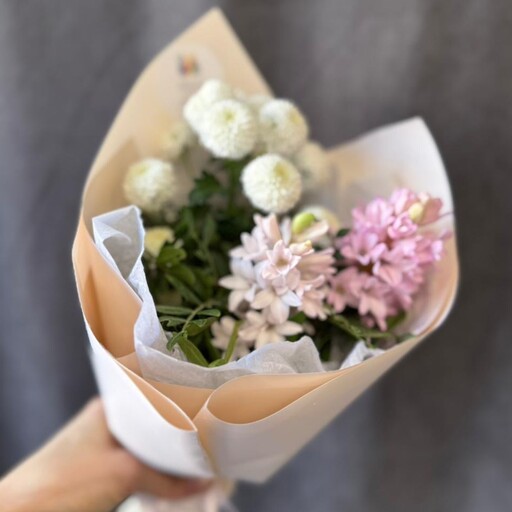 Сборный букет с пионовидными розами в нежных светлых оттенках