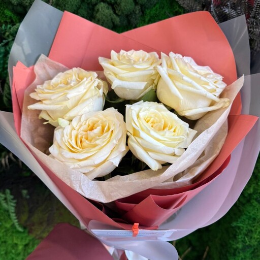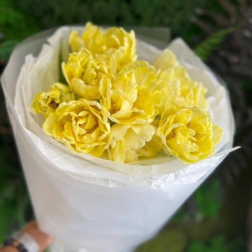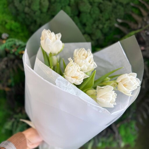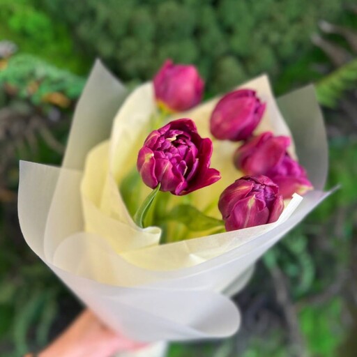 Монобукет из пионовидных тюльпанов сорта Мондиаль (5 штук)