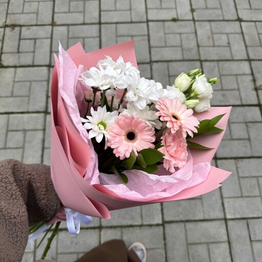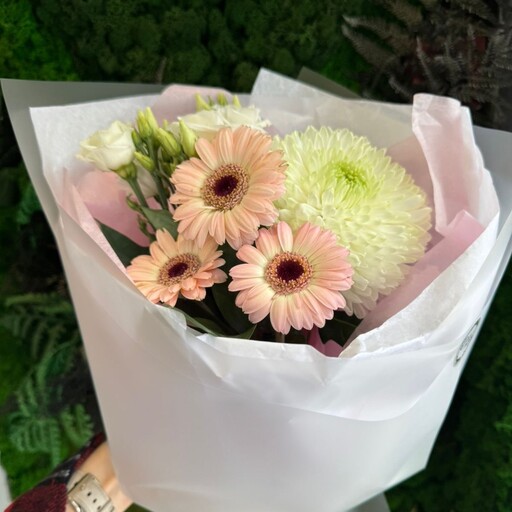 Сборный букет в нежных оттенках с гермини
