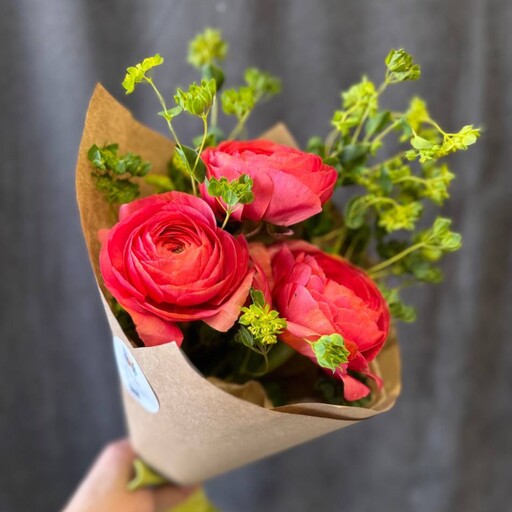Небольшой букет -комплимент с ранункулюсами и зеленью (высота ~ 40см)