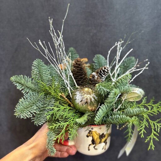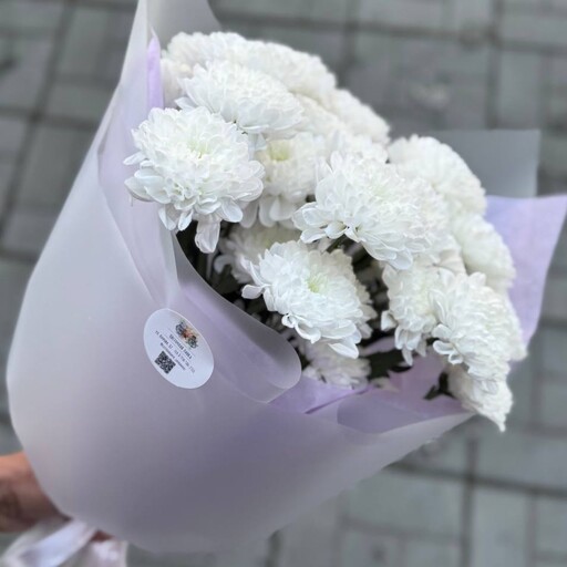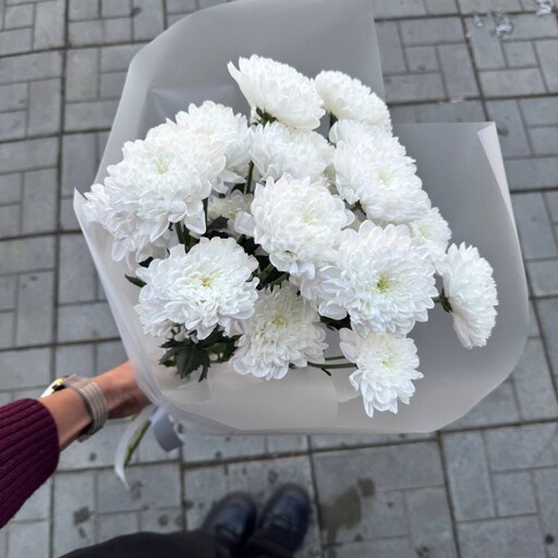 Веточка кустовой хризантемы с эвкалиптом в оформлении