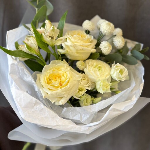 Сборный букет в светлых оттенках с пионовидными розами