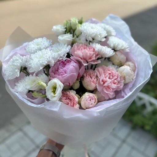 Сборный букет в нежных оттенках с пионом