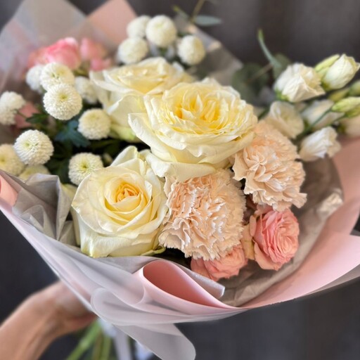 Сборный букет в нежных светлых оттенках