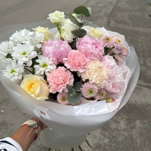 Сборный букет с пионами в нежных оттенках