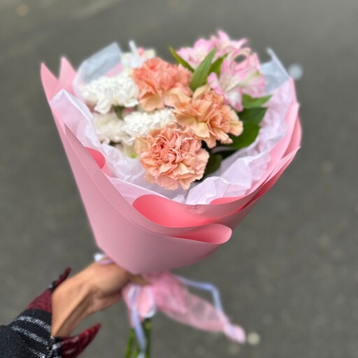 Сборный букет в нежных оттенках с диантусами