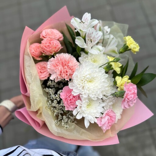 Сборный букет -комплимент в розовых оттенках с диантусами