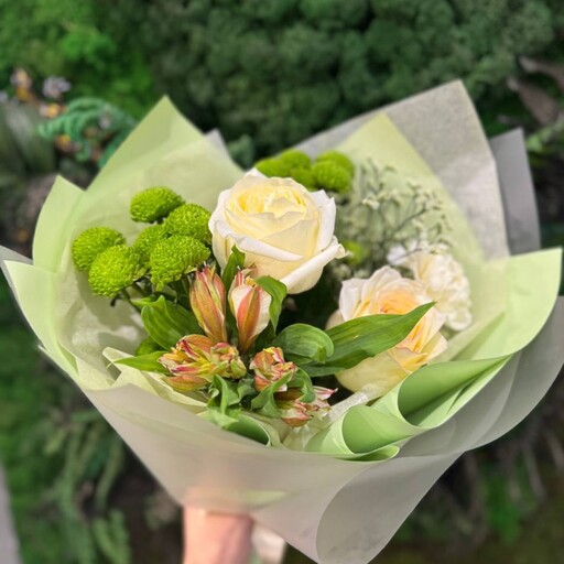 Сборный букет в бело-зеленой цветовой гамме